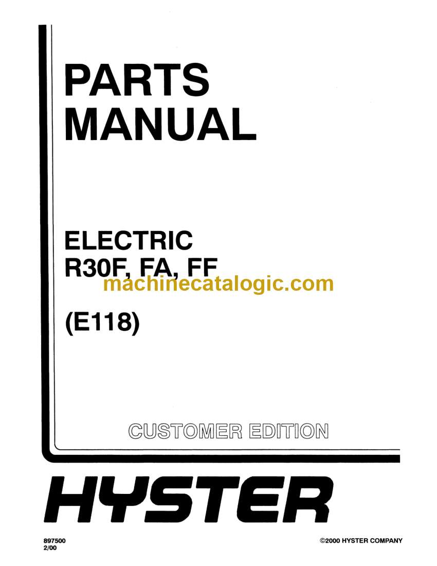 Hyster R30F, R30FA, R30FF (E118) Forklift Parts Manual
