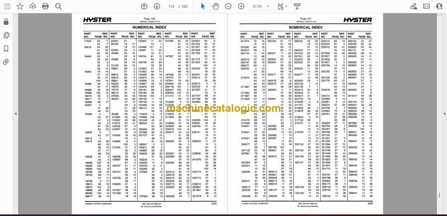 Hyster R30F, R30FA, R30FF (E118) Forklift Parts Manual Index: