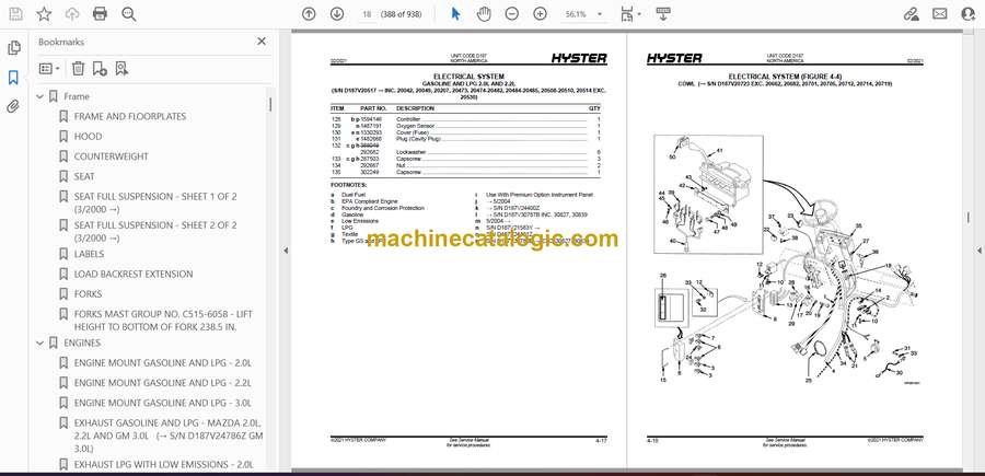 ELECTRICAL SYSTEM GASOLINE AND LPG 2.0L AND 2.2L (S/N D187V20517 → INC. 20042, 20049, 20207, 20473, 20474-20482, 20484-20485, 20508-20510, 20514 EXC. 20530)