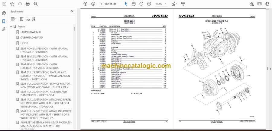 FREE-LIFT CYLINDER AND ATTACHING PARTS THREE STAGE FULL FREE-LIFT – F508-F563 (8/2017 →)