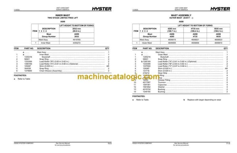 • MAST ASSEMBLY INTERMEDIATE MAST AND MAIN LIFT (8/2017 →)