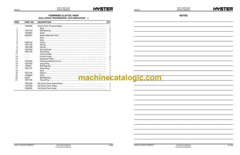 MAIN LIFT CYLINDER TWO STAGE LIMITED FREE-LIFT – S100-120FT