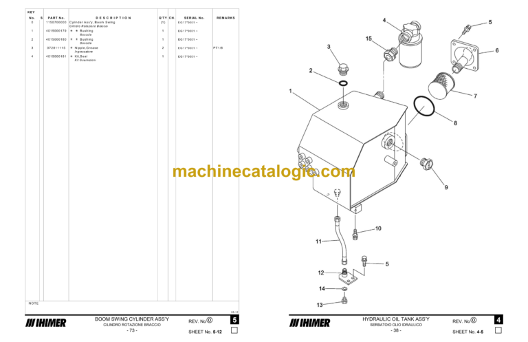 IНI 17 VXE Mini Excavator Spare Parts Catalog
