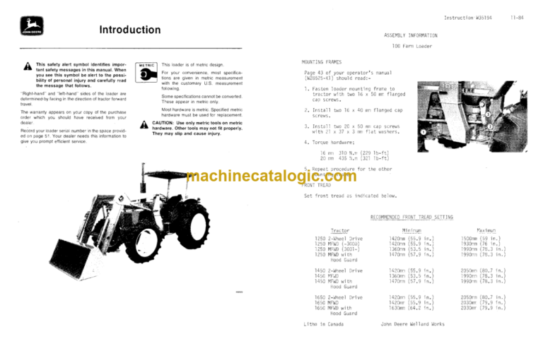 John Deere 100 Farm Loaders Operator’s Manual (OMW28525)