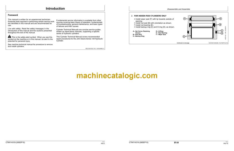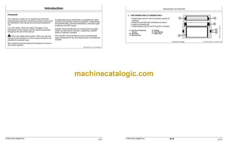 John Deere 120 Series Hydraulic Cylinders Technical Manual (CTM114319)