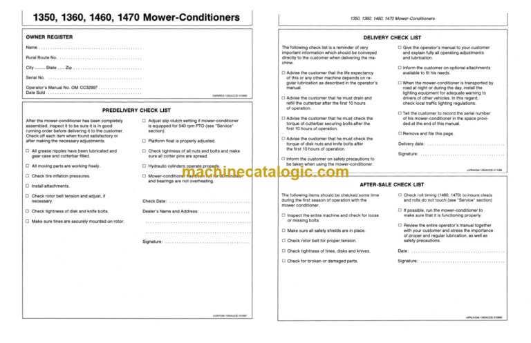 John Deere 1350, 1360, 1460 and 1470 Mower-Conditioners Operator’s Manual (OMCC32997)