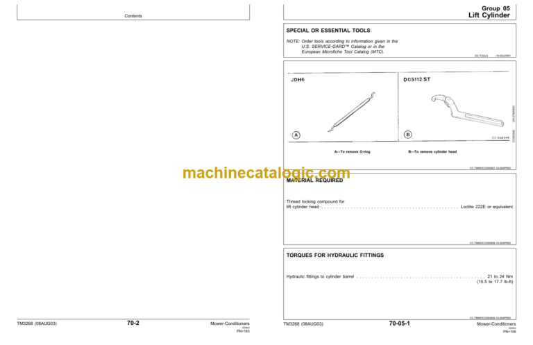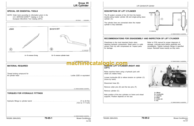 John Deere 1350, 1360, 1460 and 1470 Mower-Conditioners Technical Manual (TM3268)