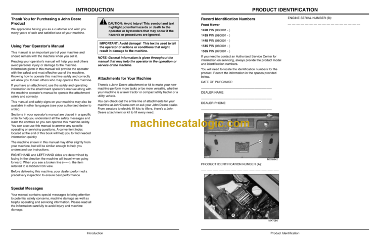 John Deere 1420, 1435, 1445, 1545, 1565 Series-2 Front Mower Operator’s Manual (OMTCU24076)