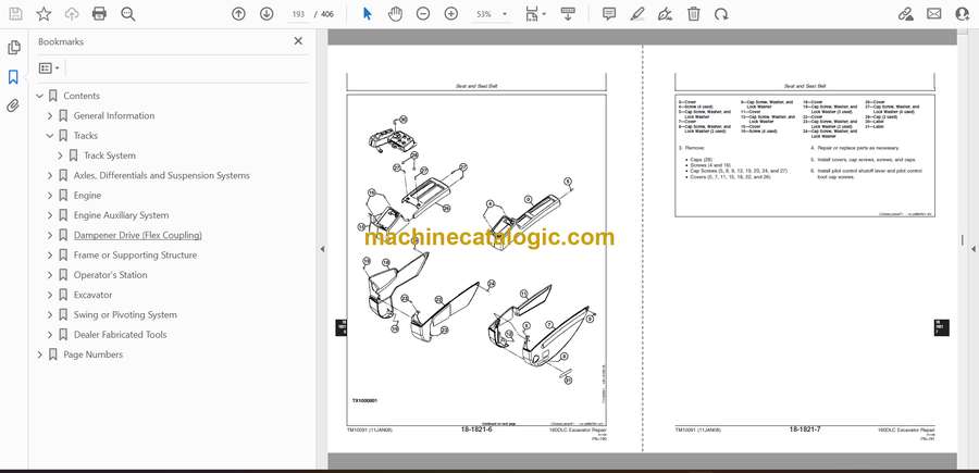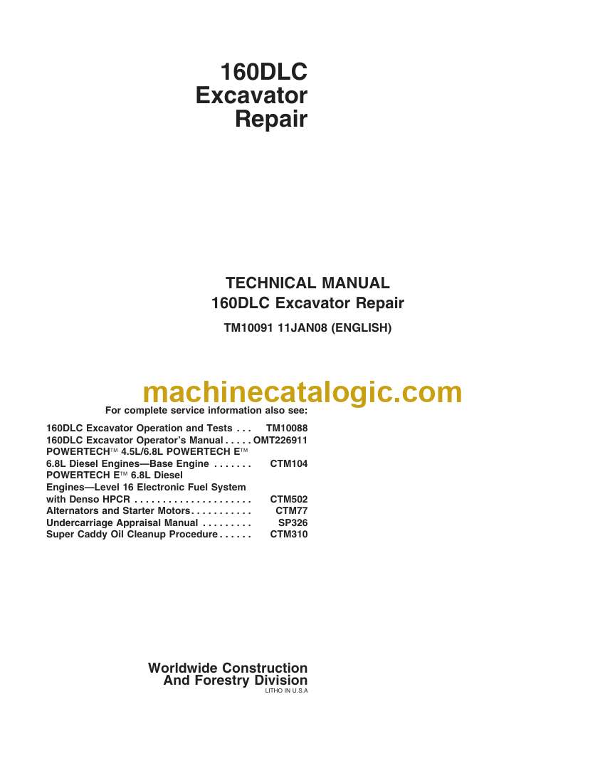The 160DLC is a mid-size excavator that spends its life in mud, rock, and demolition rubble, so when something’s off, you need to be able to trace the problem without guessing. This repair technical manual is what I’d pull out when a function is slow, a track is walking, or the boom won’t hold load and I need to work through the systems in a logical way. For example, if a travel motor is weak on one side, this book helps you verify the basics first, then isolate whether you’re dealing with hydraulics, drive components, or control issues before you start throwing parts at it.
