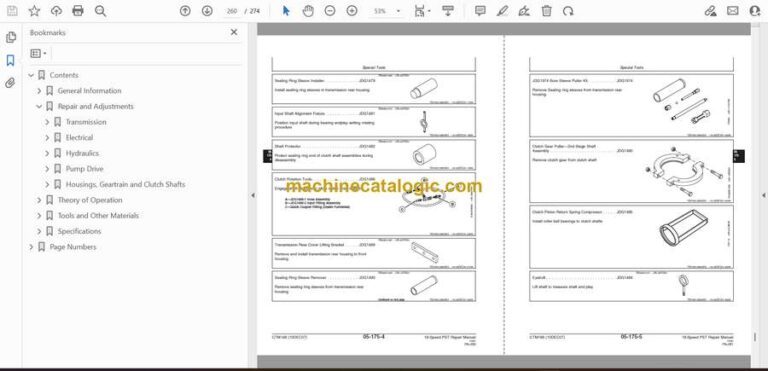When these Deere machines are pulling heavy tillage tools or running loaders all day, the 18-speed PST transmission is doing the hard work in dust, mud, and temperature swings. This manual is what I keep handy when I need to trace a shifting issue, verify transmission pressures, or go deeper than basic checks. For example, if the tractor starts hunting between gears under load or won’t hold in a certain range, this document guides you through isolating whether it’s mechanical, hydraulic, or electrical before you start stripping components.