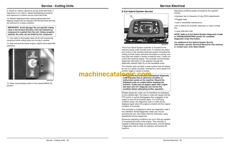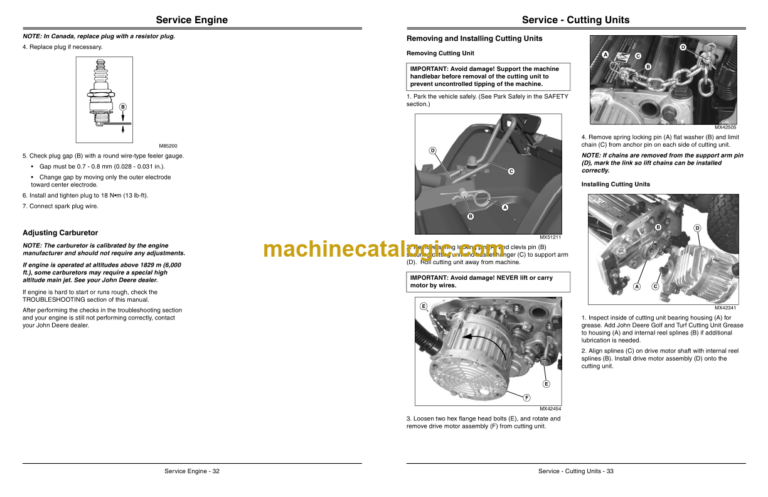 John Deere 180 and 220 E-Cut Hybrid Walk Greens Mower INDEX:
