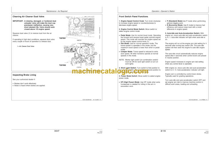 John Deere 180CW, 210CW Wheeled Excavator Index: