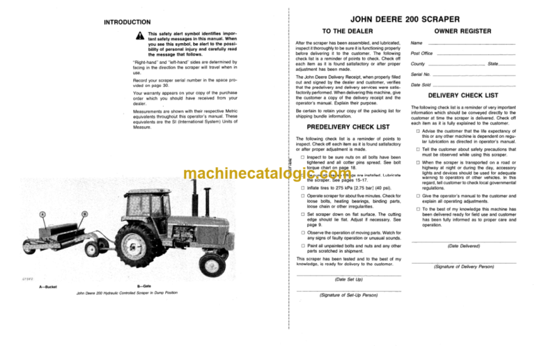John Deere 200 Hydraulic-Controller Scraper Operator’s Manual (OMA40219)