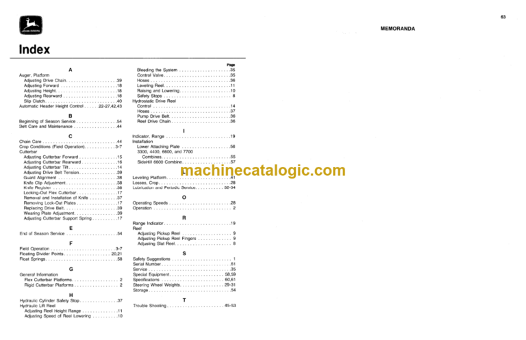 John Deere 200 Series Cutting Platforms INDEX: