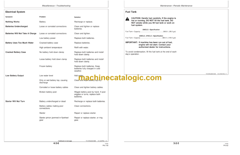 Precautions for Alternator and Regulator . . . . . 4-1-1 230CLC Machine Specifications . . . . . . . . . . . 4-6-13