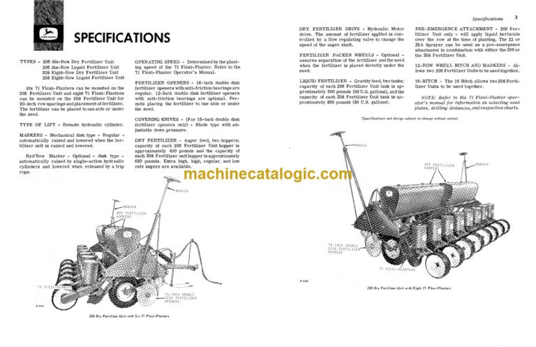 John Deere 206 and 208 Dry or Liquid Fertilizer Units INDEX: