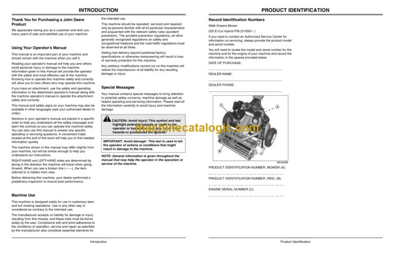 John Deere 220 E-Cut Hybrid Walk Greens Mower Operator’s Manual (OMTCU27090)