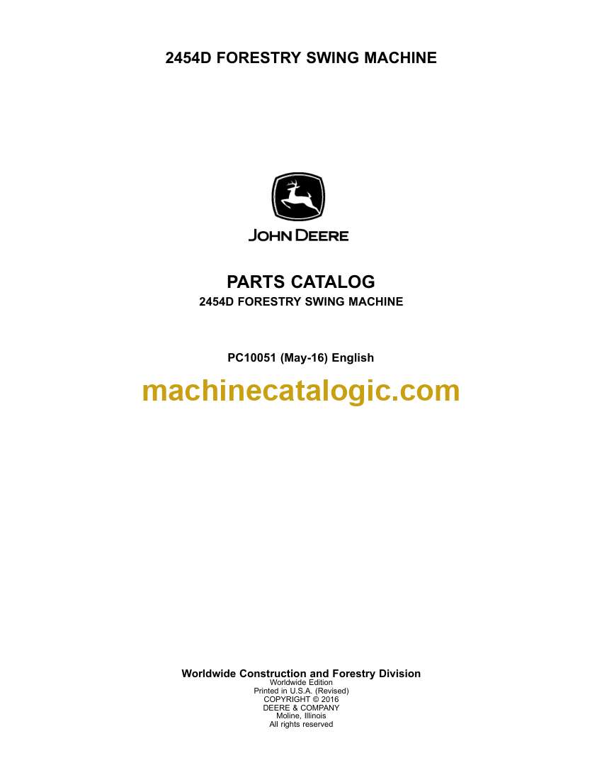 John Deere 2454D Forestry Swing Machine Parts Catalog (PC10051)