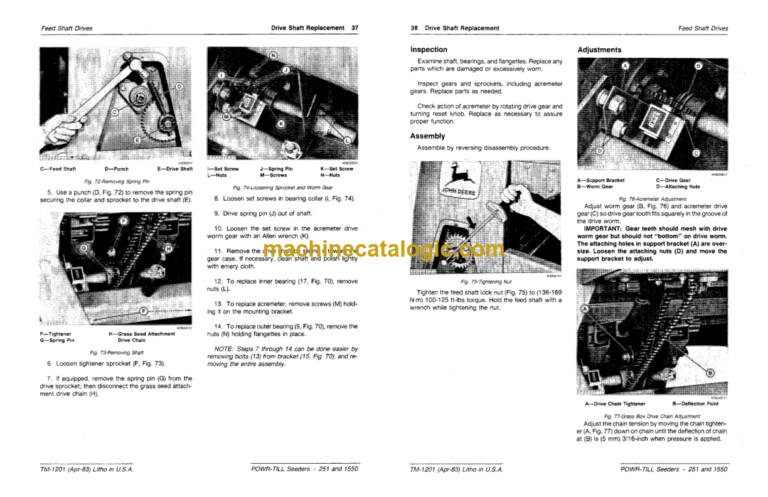 John Deere 251 and 1550 Power Till Seeders Technical Manual (TM1201)