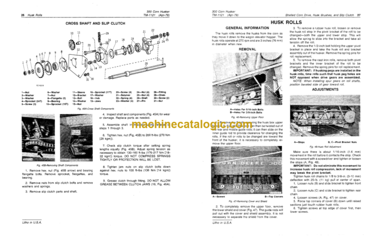 John Deere 300 Corn Husker Technical Manual (TM1121)