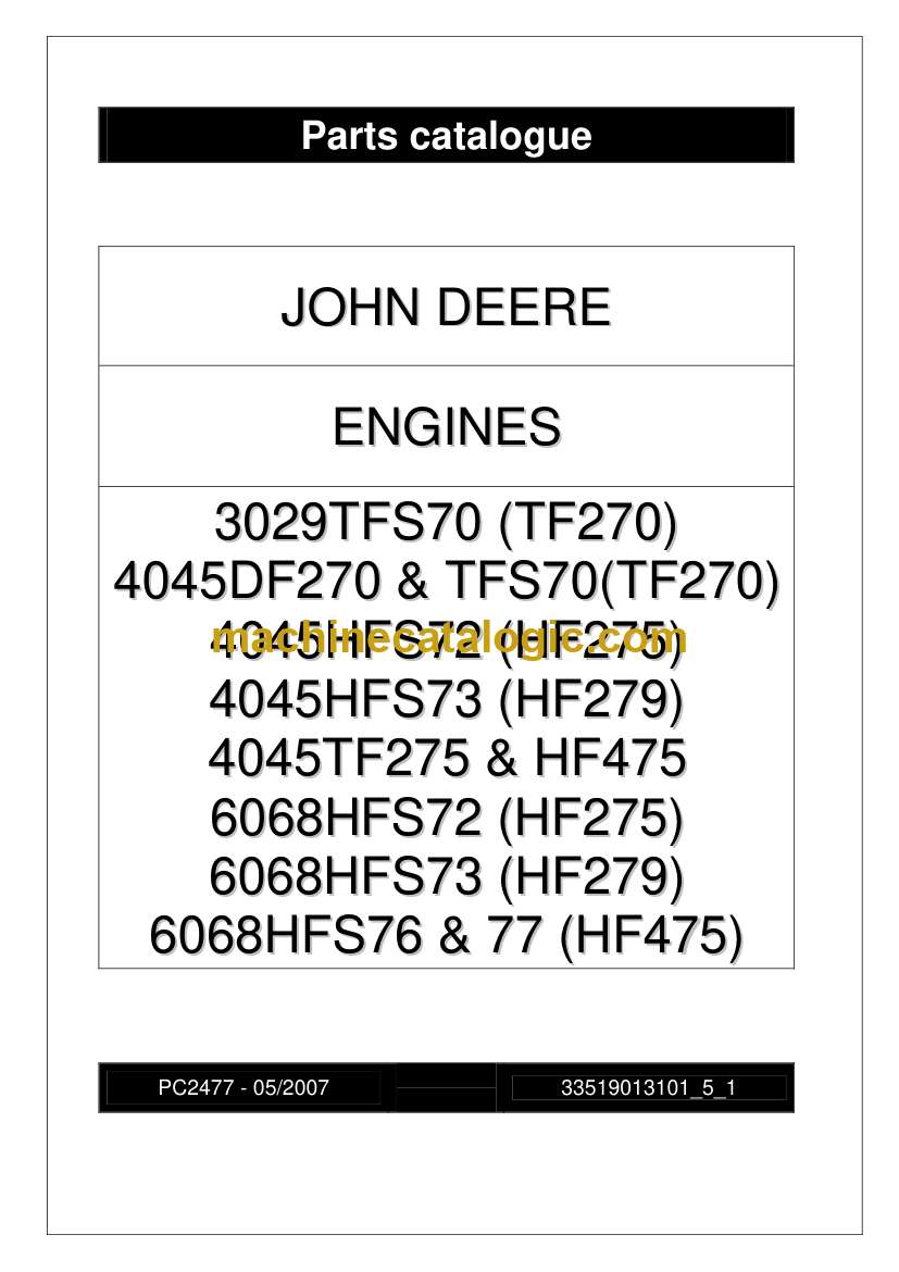 Model: 3029TFS70 (TF270) 4045DF270 & TFS70(TF270) 4045HFS72 (HF275) 4045HFS73 (HF279) 4045TF275 & HF475 6068HFS72 (HF275) 6068HFS73 (HF279) 6068HFS76 & 77 (HF475)
