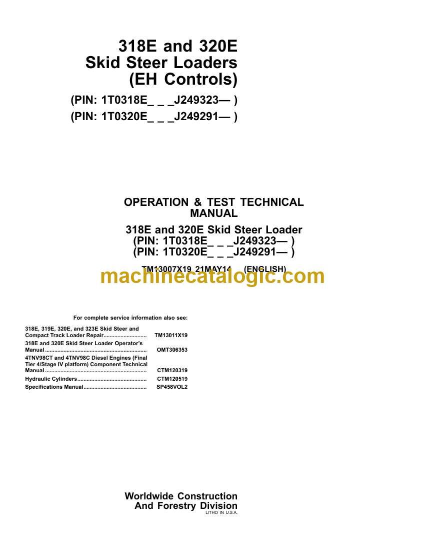 John Deere 318E and 320E Skid Steer Loaders EH Controls Technical Manual (TM13007X19)