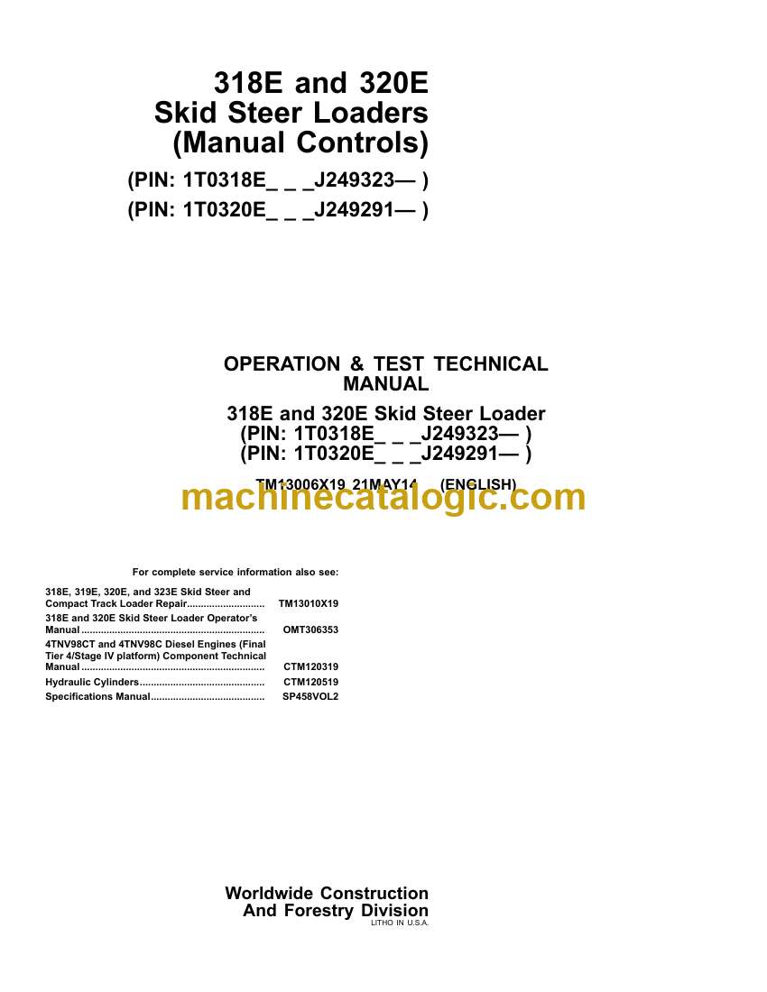 John Deere 318E and 320E Skid Steer Loaders Operation and Test Technical Manual (TM13006X19)