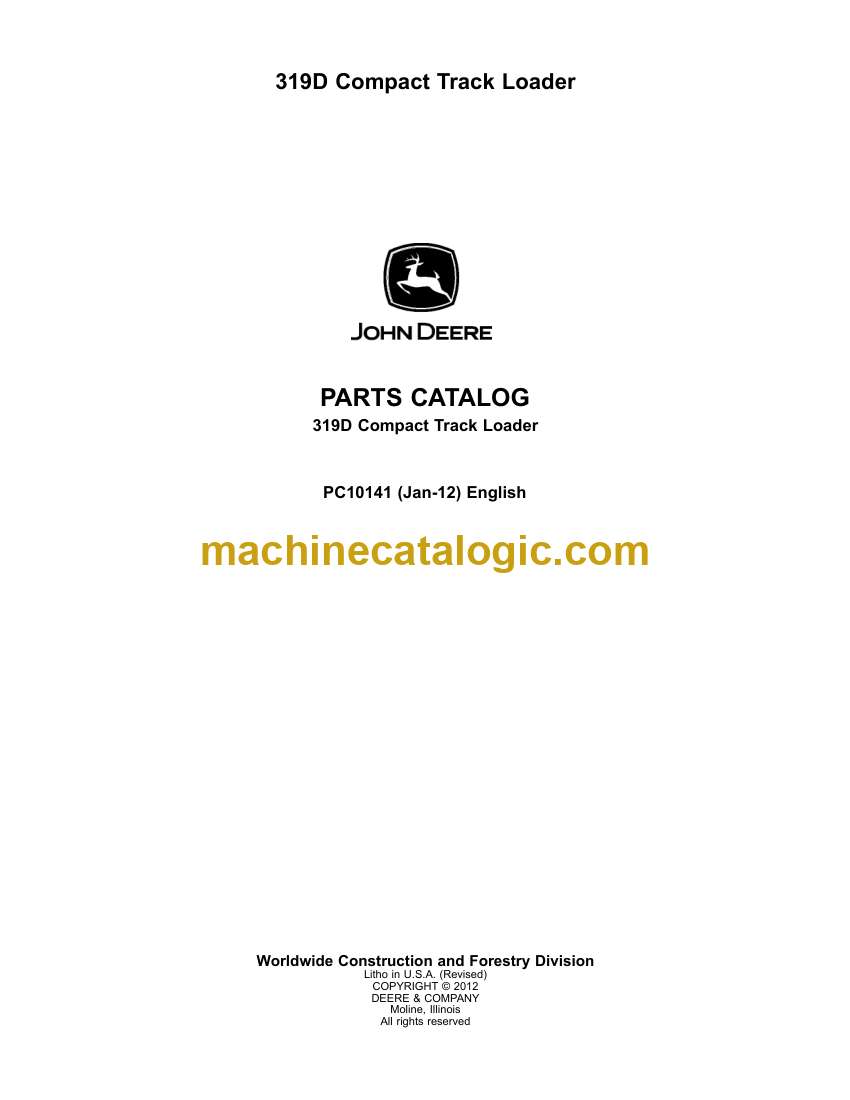 John Deere 319D Compact Track Loader Parts Catalog (PC10141)