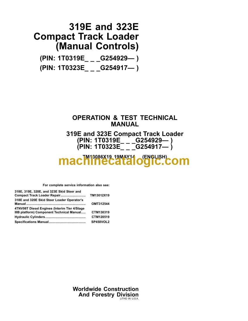 John Deere 319E and 323E Compact Track Loader Operation and Test Technical Manual (TM11398)