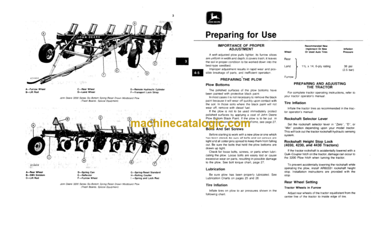 John Deere 3200 Spring-Reset Moldboard INDEX: