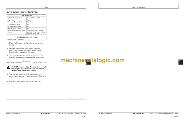 John Deere 330LC, 370 Excavator Operation and Tests Technical Manual (TM1669)