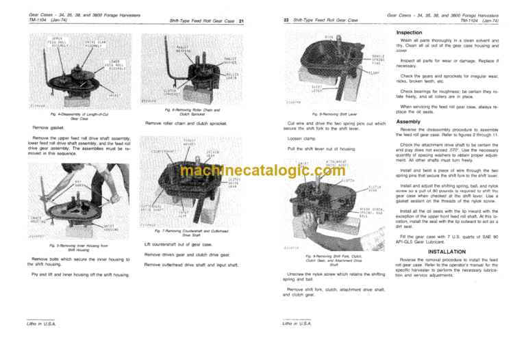 John Deere 34 35 38 and 3800 Forage Harvester Gear Cases Technical Manual (TM1104)