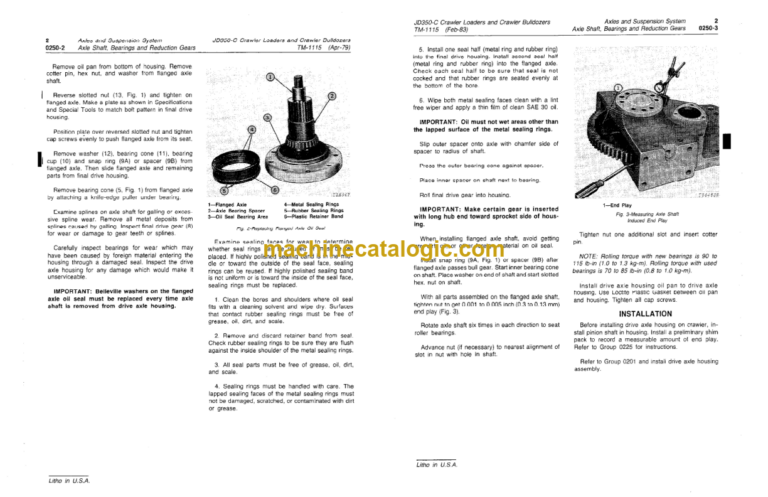 John Deere 350C 350D Crawler Bulldozer and Crawler Loader Technical Manual (TM1115)