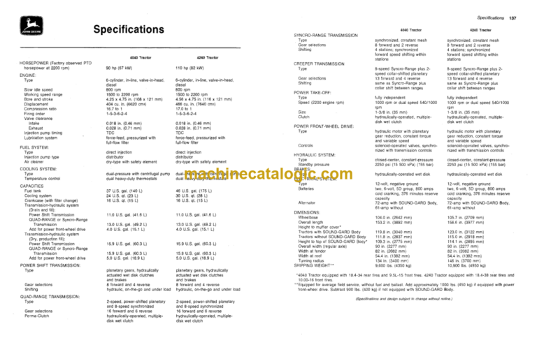 John Deere 3940 and 3960 Forage Harvesters INDEX: