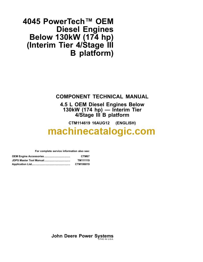 John Deere 4.5 L OEM Diesel Engines Below 130kW 174 hp Interim Tier 4 Stage 3 B platform Component Technical Manual (CTM114619)