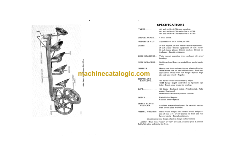 John Deere 400 and 400H Series 2-, 3- and 4-Furrow Drawn Disk Plows Operator’s Manual (OMA9959)