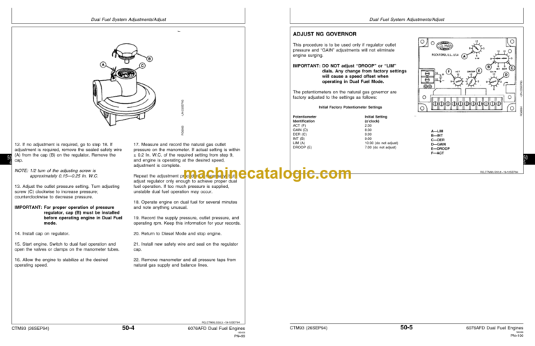 John Deere 400 Series 6076AFD Dual Fuel Engines Component Technical Manual (CTM93)