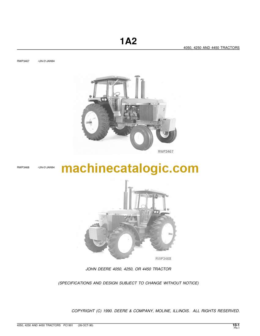 John Deere 4050, 4250 and 4450 Tractors Parts Catalog (PC1901)