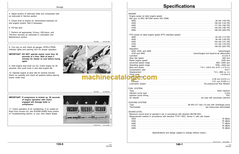 John Deere 4055, 4255, 4455, 4755, and 4955 Tractors INDEX: