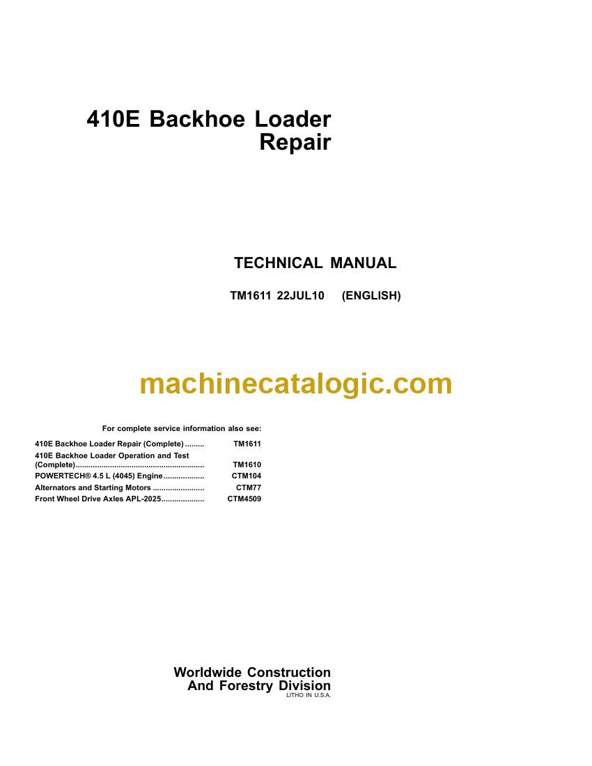 John Deere 410E Backhoe Loader Repair Technical Manual (TM1611)