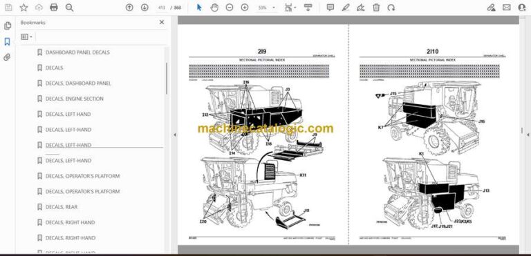 These 4435 and 4435 Hydro combines spend their lives in dusty fields, eating grain all day, so wear parts and small hardware disappear faster than you’d think. This parts catalog is what I’d pull when I need to see exactly how a sub-assembly is stacked together and which part numbers match your particular machine. Say you’ve got a leaking shaft seal on a driven component: I’d use this book to trace the shaft group, pick out the correct seal, shims, and snap rings, and make sure we don’t miss the little spacer that keeps it all aligned.