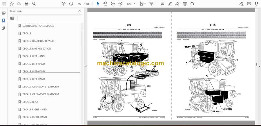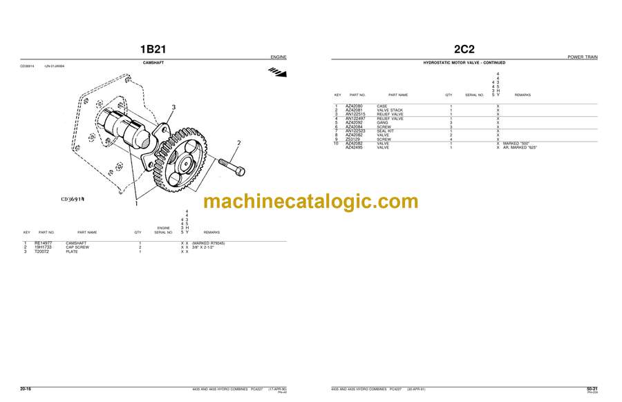 John Deere 4435 and 4435 Hydro Combines Parts Catalog (PC4227)