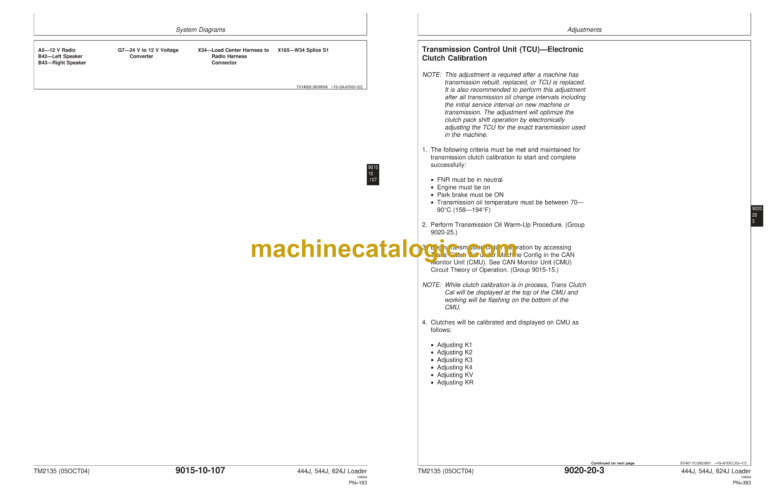John Deere 444J, 544J, 624J Loader Operation and Test Technical Manual (TM2135)