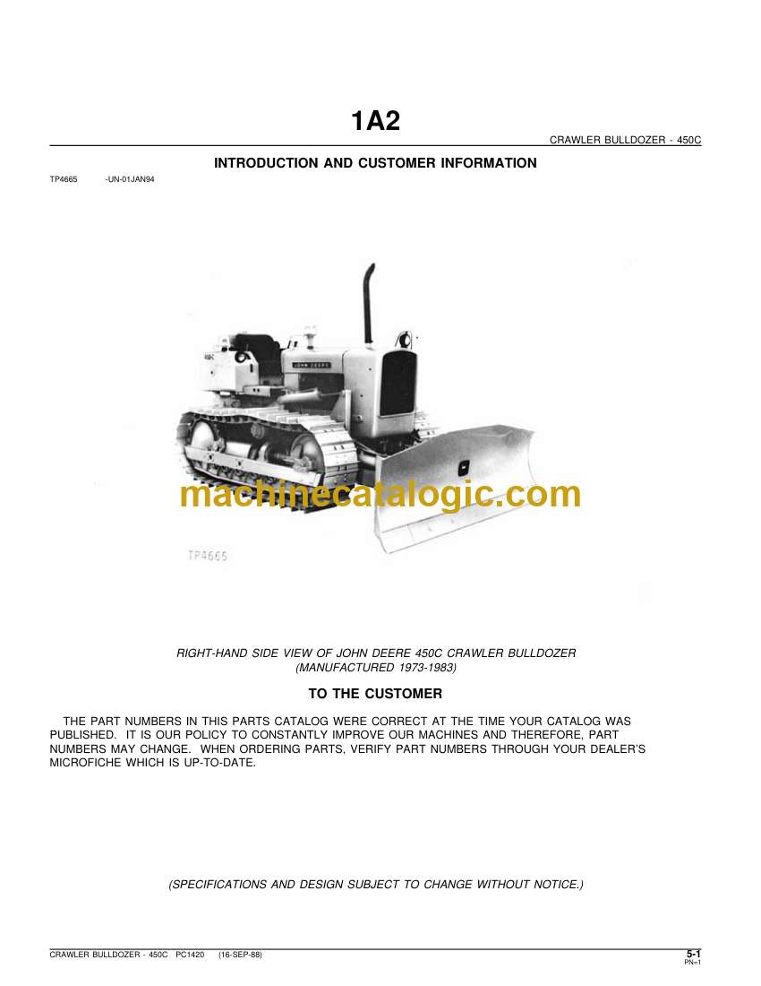 John Deere 450C Crawler Bulldozer Parts Catalog (PC1420)