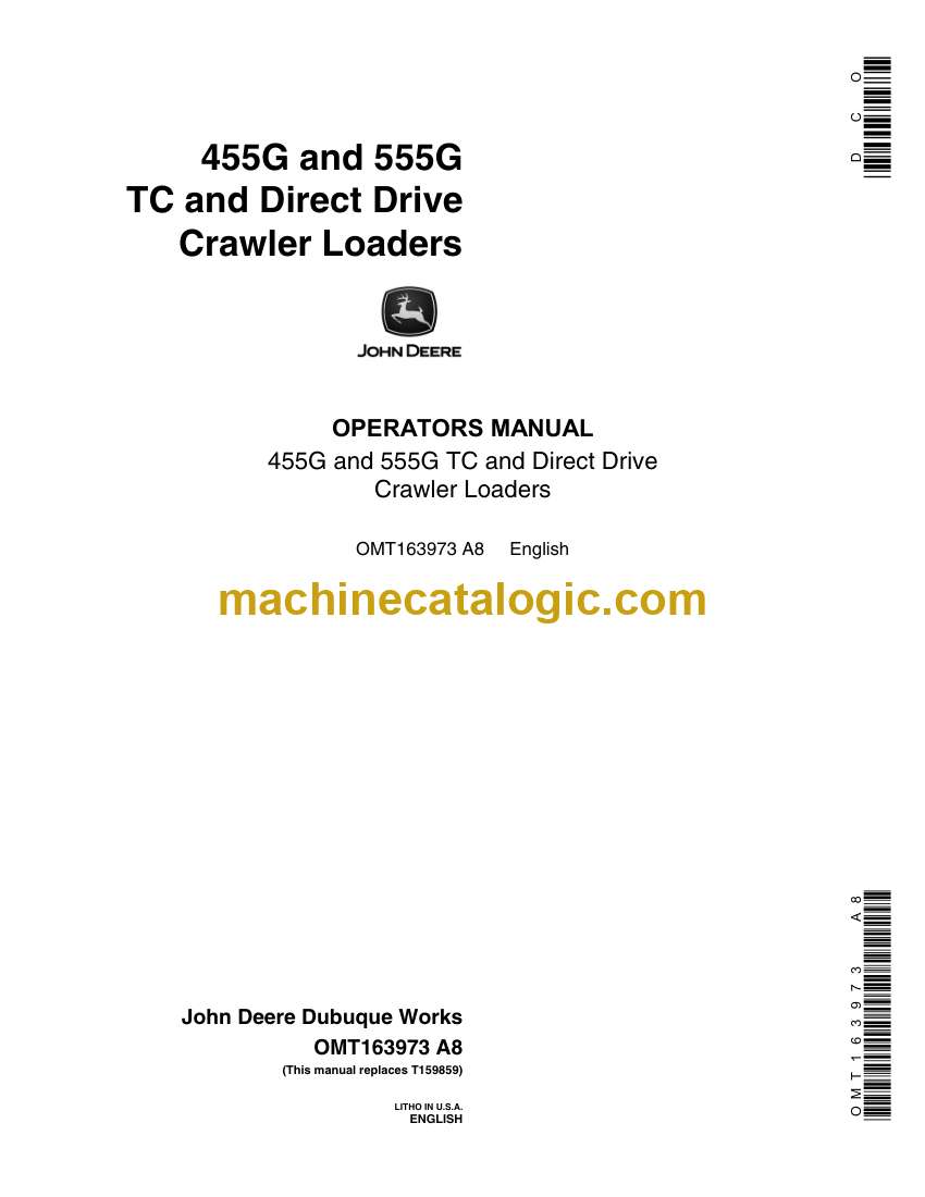 John Deere 455G and 555G TC and Direct Drive Crawler Loaders Operator Manual (OMT163973)