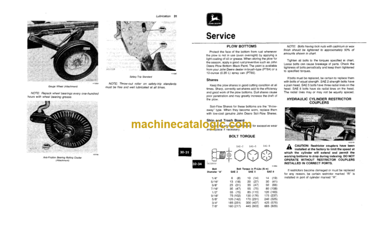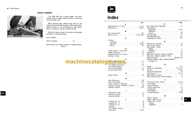 John Deere 4600 Integral Two-Way Moldboard Plows INDEX: