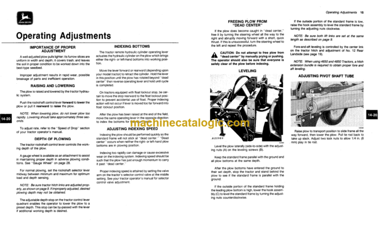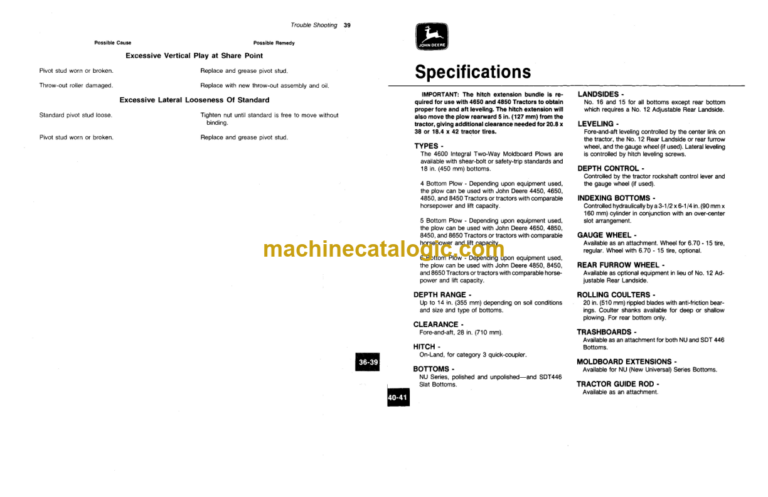 John Deere 4600 Integral Two-Way Moldboard Plows INDEX: