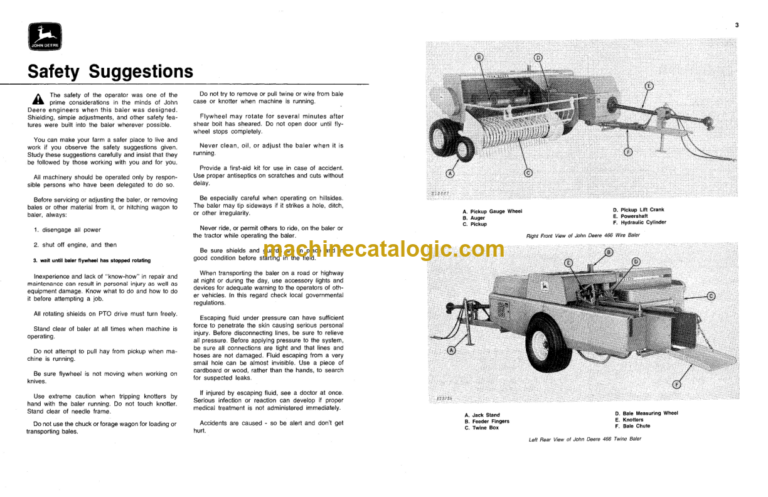 Safety Suggestions Identification Views . Operation Storage . Lubrication . Service Trouble Shooting Attachments Assembly Specifications Index