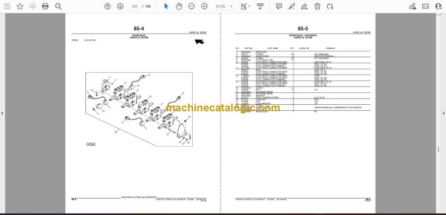 Out in the field, the 4700 sprayer spends its life running fertilizer and chemicals over big acres, often in rough, dusty conditions. This parts catalog is what I grab when I need to positively identify what’s on the machine before I order anything. Say a boom section gets bent and you’ve got damaged nozzles, brackets, and hoses—this book lets me walk through the exploded views, trace how everything ties together, and make sure I’m not missing a tiny bushing or seal that will hold the job up.