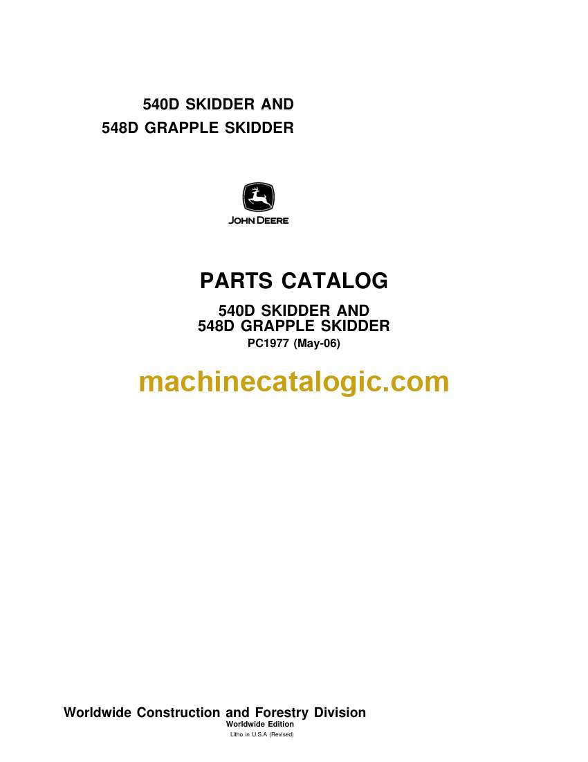John Deere 540D Skidder and 548D Grapple Skidder Parts Catalog (PC1977)